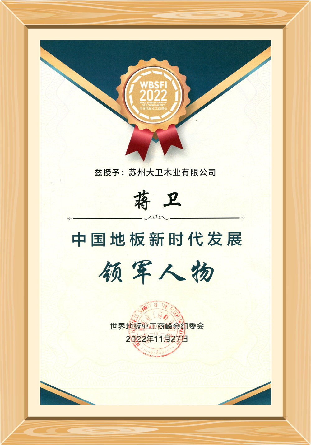 11月27日,“2022世界地板业工商峰会——中国地板新时代发展大会”在浙江南浔召开。首页地板被授予“2022世界地板业工商峰会金奖产品”的殊荣,董事长蒋卫荣获“中国地板新时代发展领军人物”称号,并受邀出席企业家论坛。本次峰会由中国林产工业协会、南浔区人民政府主办,参会嘉宾有中国林产工业协会会长王满、国家税务总局原副局长许善达、原国家质检总局工程师刘卓慧、商务部合作司、原商务参赞(正司级)陈林、中国消费者协会原秘书长杨竖昆、浙江省林业局一级巡视员吴鸿、中国林产工业协会代理秘书长陈天全、南浔区委常委、副区长陈晓等领导。峰会汇集了国内地板企业家、重点地板园区与生产聚集地管理部门负责人、全国地方地板协会负责人、房地产行业负责人,国内经济学家、高校科研学者等,围绕“初心、信心、进步、发展”主题展开对话,共同研讨重拾创业初心、保持艰苦奋进精神、树立坚定信心、谋局进步发展。